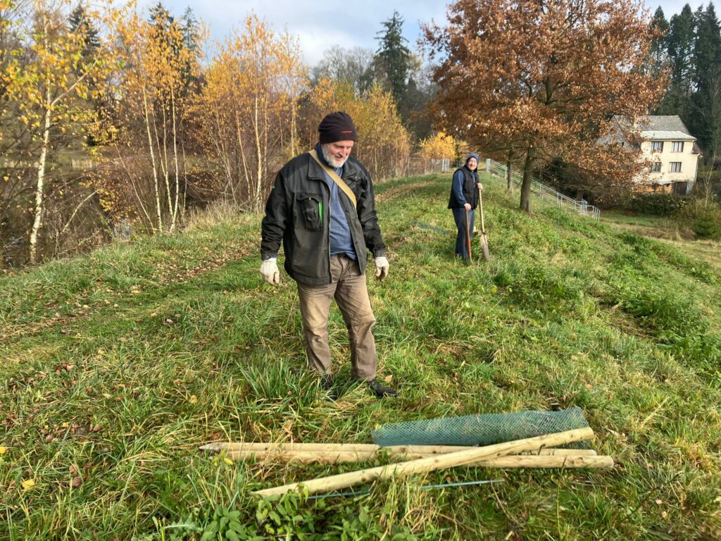 V sobotu 8. listopadu jsme po dohodě s rodinou majitelů zámeckého parku vysadili 30 dubů podle silnice od školy směrem ke Stračímu vrchu a na hrázi Mlýnského rybníka.